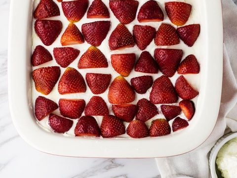 This strawberry refrigerator cake (or the Filipino version of strawberry icebox cake) has a secret ingredient — condensed milk! It’s sweet, creamy and perfect on a warm sunny day.