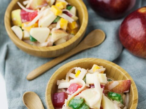 Apple buko salad is a fresh take on the classic Filipino holiday dessert, fruit salad. Made with young coconuts and crisp apples, it’s sweet, tangy, red, green, delicious!