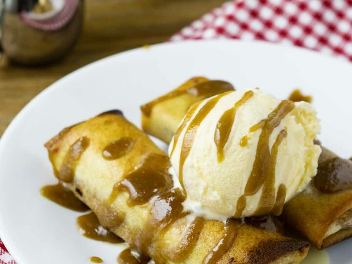 Filipino turon recipe for turon that’s crispy and crunchy whether fried or baked. Serve with vanilla ice cream and salted caramel sauce and you have yourself a dessert that transports you straight to the tropics.