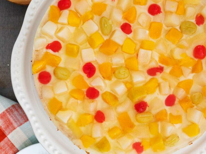 Crema de Fruta is a Filipino dessert made of delicious layers of soft fluffy cake, rich creamy custard, and fruit blanketed in gelatine. Fun, festive, definitely deserves a place in your celebrations.