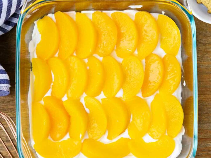 Peach icebox cake is refreshing, delicious and easy to make. Use fresh peaches when they’re in season, or canned peaches to make this summer dessert any time of the year.