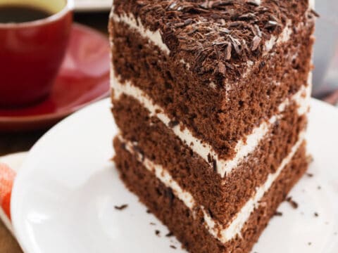 A soft, moist vanilla cake with chocolate buttercream.
