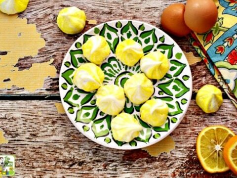 These meringue cookies are deliciously gluten-free. This meringue recipe is flavoured with grated Meyer lemon rind and vanilla.