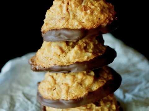 These macaroons are every coconut lovers dream cookie: a ball of crispy shredded coconut, moist and chewy on the inside, golden on the outside, sweetened with raw honey, and drizzled with decadent dark chocolate.