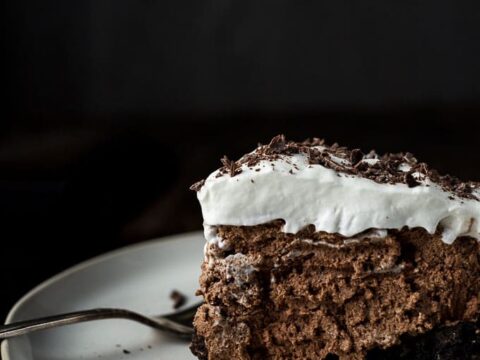 This no bake chocolate mousse pie is made with creamy melted chocolate mixed with whipped cream and fluffy egg whites all on top of a homemade Oreo crust